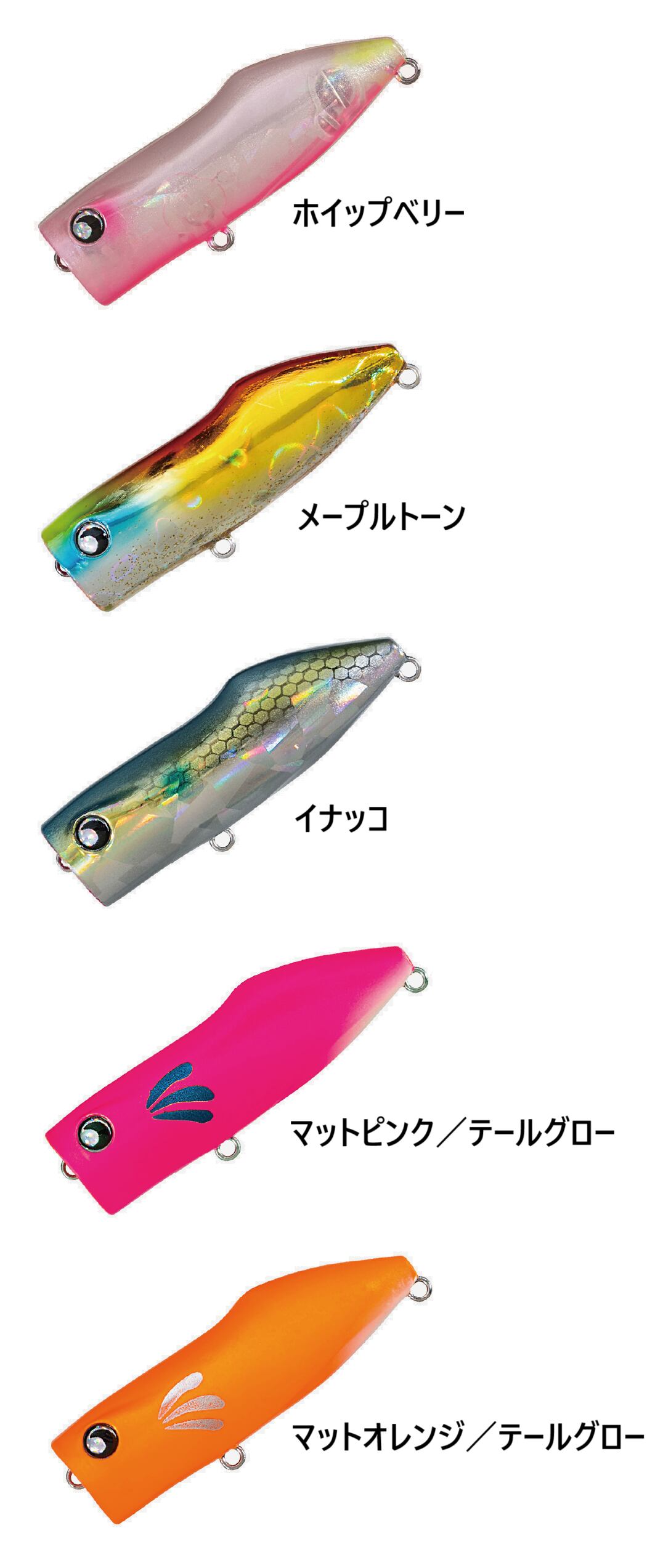 チヌ・シーバスに主眼を置いて開発。小場所やサイト等「興味は持つけど喰わせるまで至らない」スレた個体や壁チヌのように極めて追う距離が短い個体に対して有効な1本。3アクションを組み合わせる事でその日のストライクゾーンを幅広く探す事が可能。