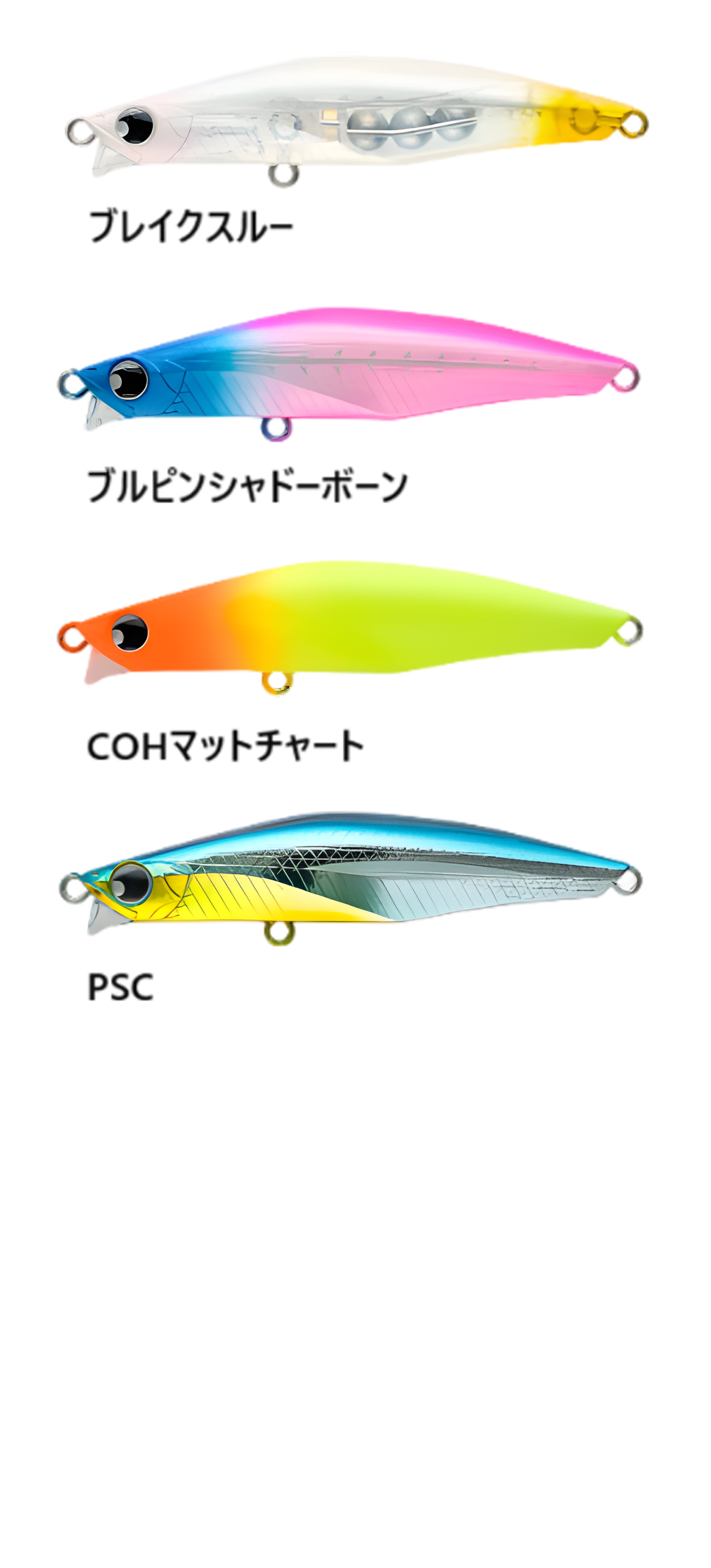 全長 : 100㎜ 重量 : 27g フック : #4 リング : #3 タイプ : シンキング アクション : スラローム レンジ : 20~80cm