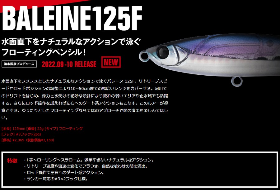 [全長] 125mm [重量] 22g [タイプ] フローティング [フック] #3フック×2pcs
